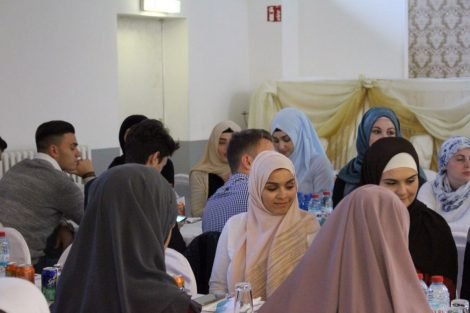 Nakon akšamskog ezana i prekida posta, u džamiji je zajednički obavljen akšam namaz, a poslije toga je servirana bogata iftarska trpeza. Cijeli program je popraćen učenjem odabranih ajeta iz Kur’ana, i tradicionalnih ilahija i kasida na bosanskom, arapskom i turskom jeziku. Iftar se užurbano privodio kraju, da bi se zajednički pristupilo klanjanju teravih-namaza, a poslije teravije druženje je nastavljeno do kasno u noć, sklapajući nova prijateljstva i razmjenjujući ideje za buduće projekte.